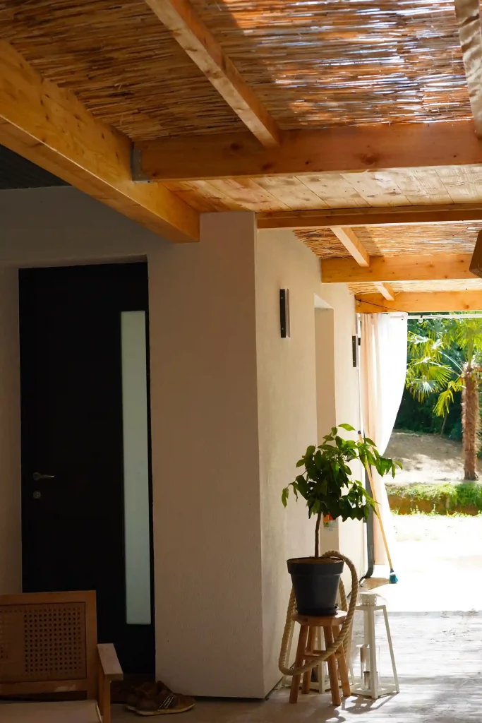 𝐎𝐛𝐣𝐞𝐜𝐭𝐢𝐟 : Réaliser un enduit à la chaux hydraulique avec une peinture sur-mesure effet rouge rubis, testée et validée après plusieurs essais papier. Une teinte chaude, minérale, parfaitement intégrée à l’architecture.